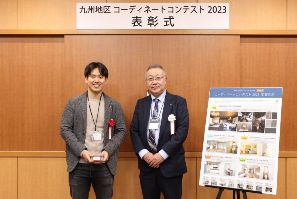 壁紙見本帳「ファイン」の発刊を記念し、サンゲツ九州支社が開催した「コーディネートコンテスト2023」において、当社がエントリーした「シンプルで美しいアーバンスタイルな暮らし」が大賞をいただきました!