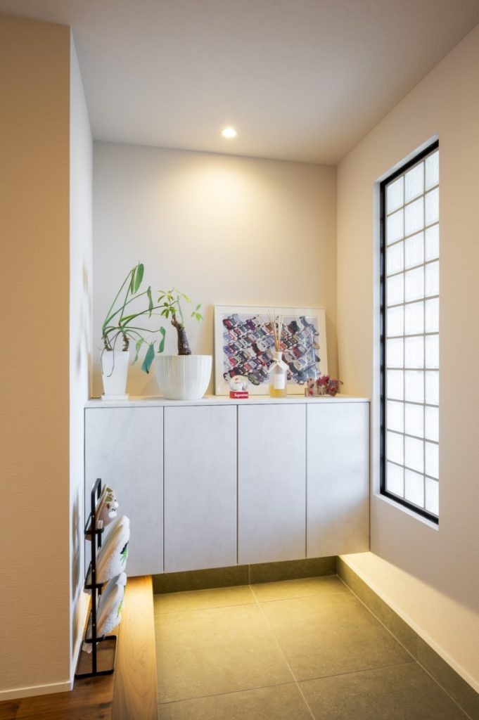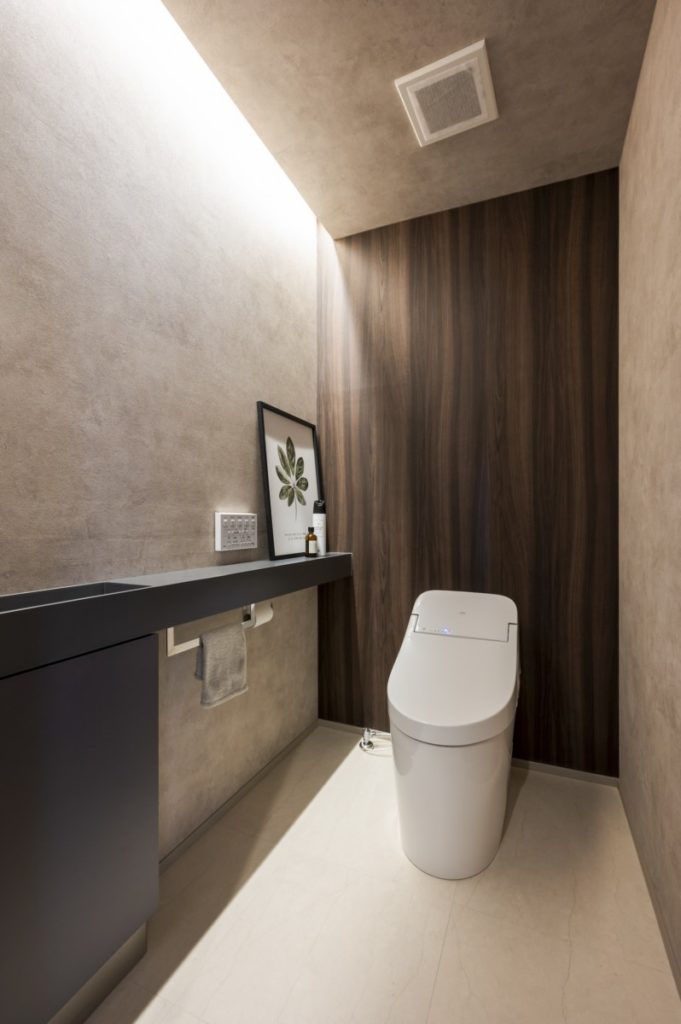 玄関や洗面、トイレにも間接照明が採用されており、空間イメージの統一が図られています。