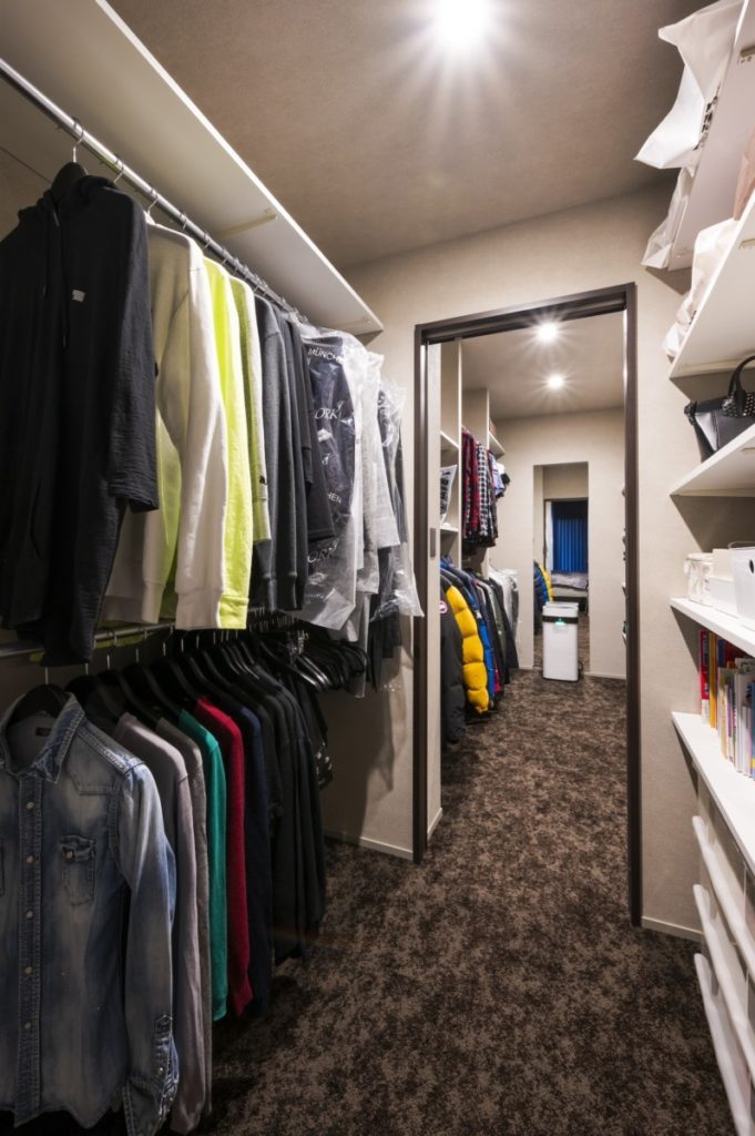 また、WICと寝室の床はカーペットにすることで、プライベートな雰囲気を高めました。毛足の長いタイプを採用したこともあり、ラグジュアリーで落ち着いた空間に仕上がっています。