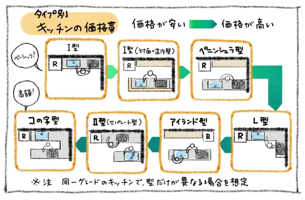 そんなキッチンを選定する際の、主なポイントは3つです。タイプとサイズ、そしてグレードです。