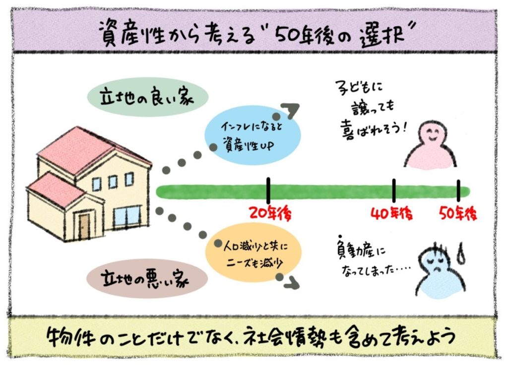 例えば、人口減少時代にもっとも需要の少ない「郊外の戸建て」を購入したとします。この場合、新築でも中古でも構いませんが、いずれにしても50年後には売却が難しいだけでなく、相続する子どもたちにとっても「負動産」になっている可能性が高いでしょう。