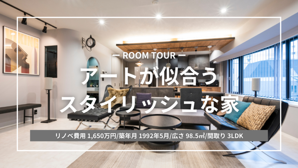 もう一つの動画は、2023年に完成した「アートが似合うスタイリッシュな家」です。福岡市中央区の人気エリアにある高級マンション(新築時には1億円越えのお部屋)を、オトナ二人暮らしの場にリノベーション。ゆとりある二人だからこそ、遊び心がたっぷり詰まった空間になりました。