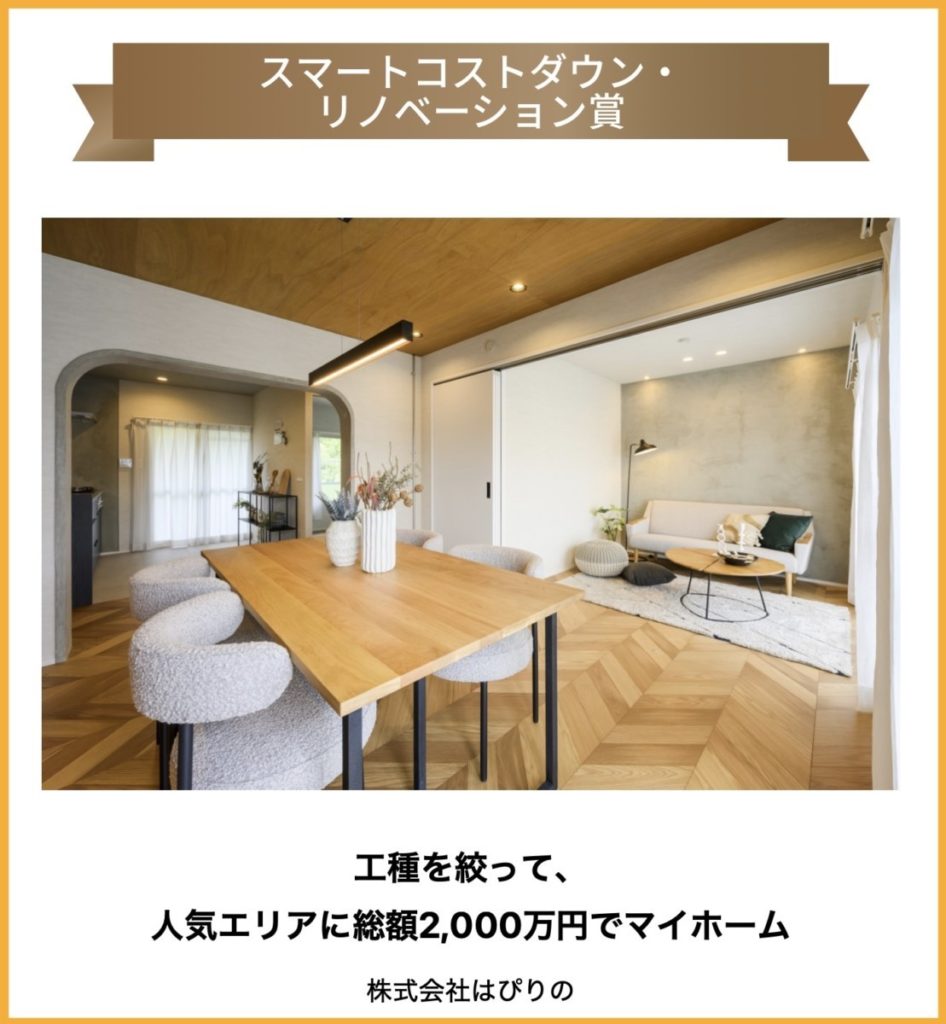 新築だけでなく、中古住宅も値上がりしています。さらに、残念ながら工事費も年々高騰しています。だからこそ、私たちが大切にしている「無理なく、ムダなく。安心&安全なマイホーム」を作り上げるために、事業者が知恵を絞ることが必要です。その点を「スマートコストダウン・リノベーション賞」として、同業の皆さまに評価いただいたことを大変うれしく感じています。