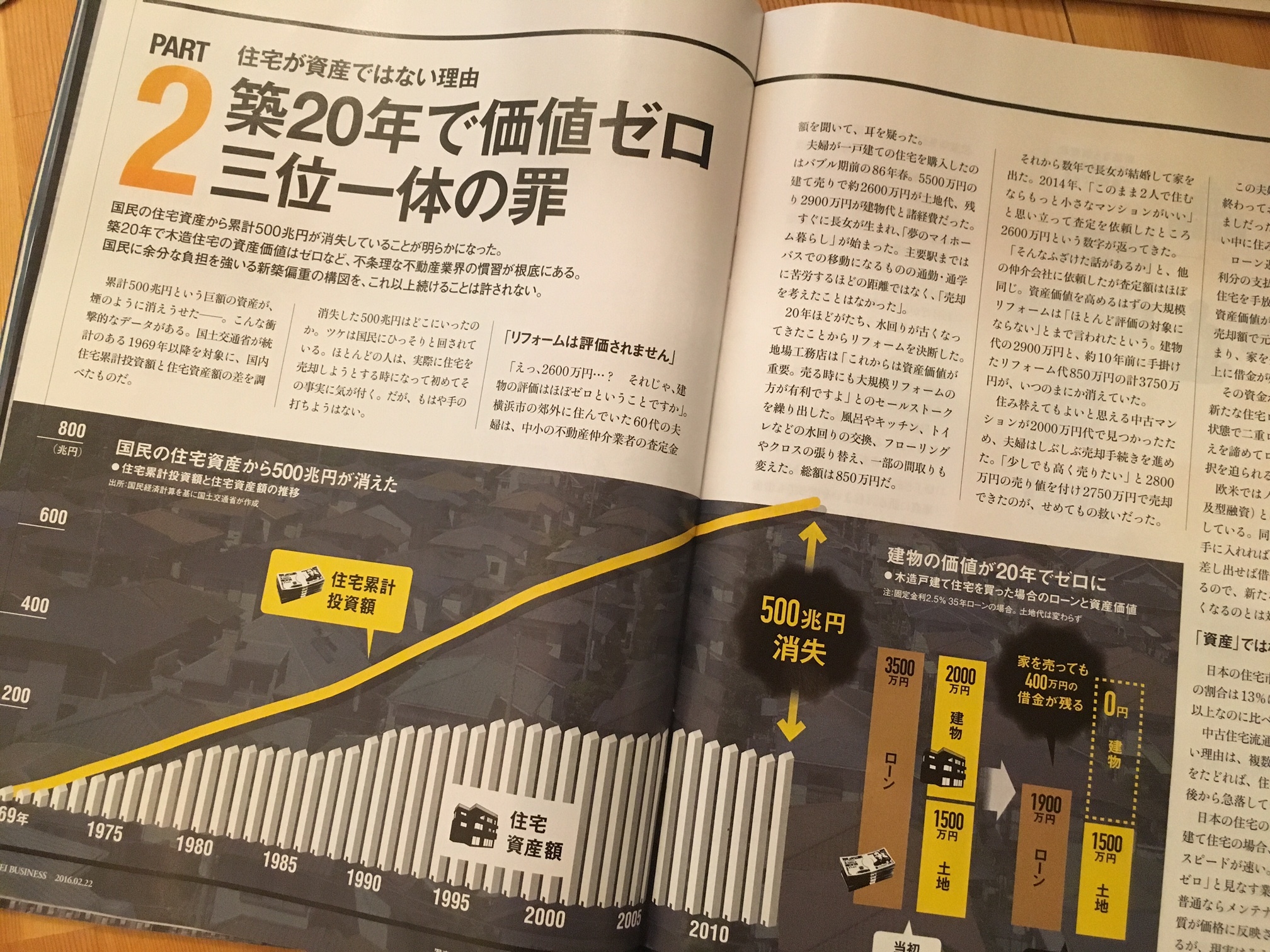今週発売された「日経ビジネス」の特集が「シリーズ日本が危ない/家の寿命は20年 消えた500兆円のワケ」という内容でした。