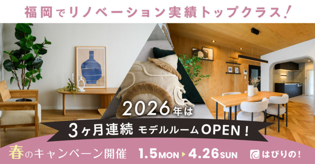 さらに、一年間でもっともマイホーム探しの需要が高まるこれからのシーズンに向けて、お得なキャンペーンもご用意しました!物件探しとリノベーションをご依頼(発注)いただいた方へ、人気インテリアショップのクーポン5万円分をプレゼントする「spring Campaign 2026」がスタートします。