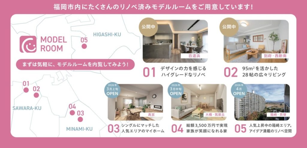 子育て世代に人気の西新小学校、百道中学校区にある築23年のマンションが、リノベーションでどのように生まれ変わったのか。これからの時代のスタンダートとなる「マイホームのあり方」を、ぜひモデルルームでご体感ください。