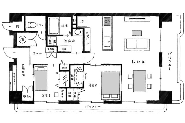 天神にも博多駅にも自転車で10分以内で、なおかつ最寄りの地下鉄渡辺通駅や西鉄薬院駅までも徒歩圏内。近隣には商業施設や文化施設が多数点在するにも関わらず、川沿いの気持ちの良いロケーションを持つヴィンテージマンションでした。