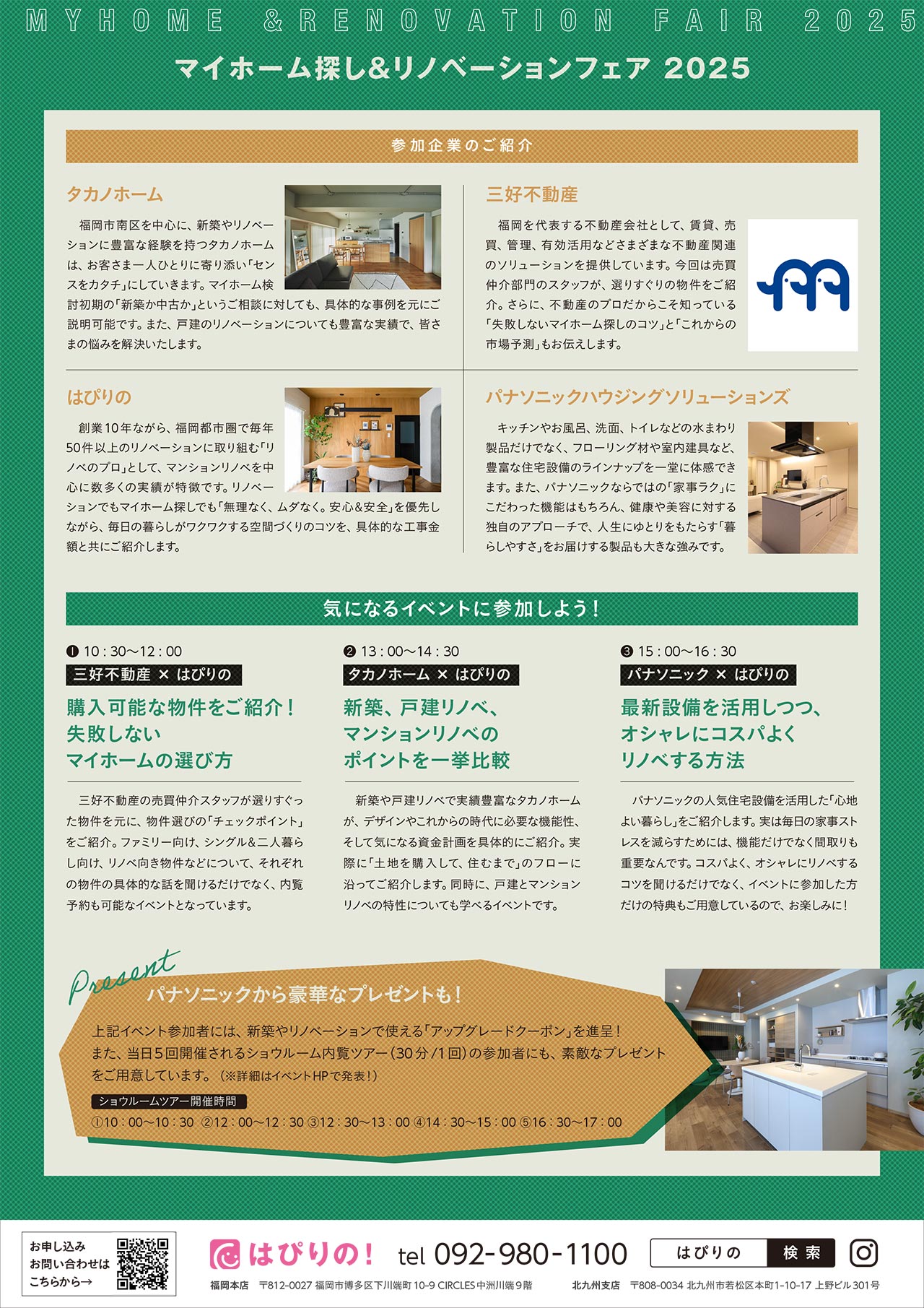 福岡で実績豊富な4社のスタッフが、皆さまのマイホーム探し&リノベーションをしっかりお手伝いさせていただく特別な1日です。