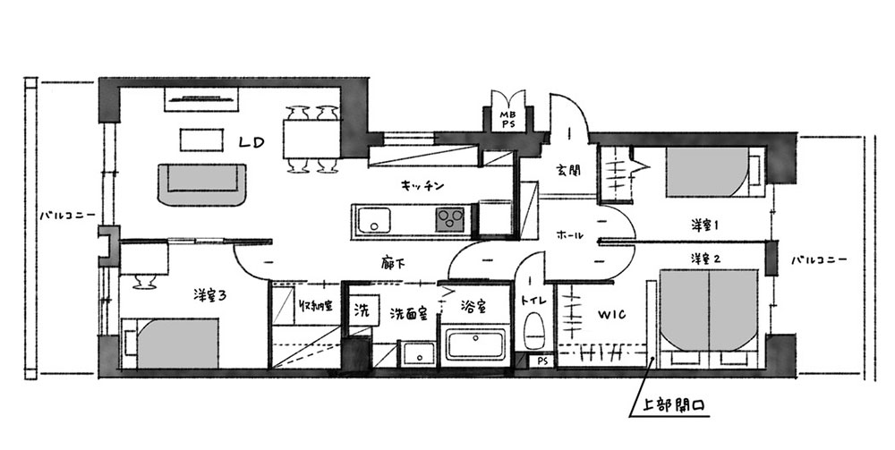 対象のお部屋は広さが72㎡あるとはいえ、解体前は個室優先の横長レイアウトで、肌感覚としてはコンパクトに感じる空間でした。