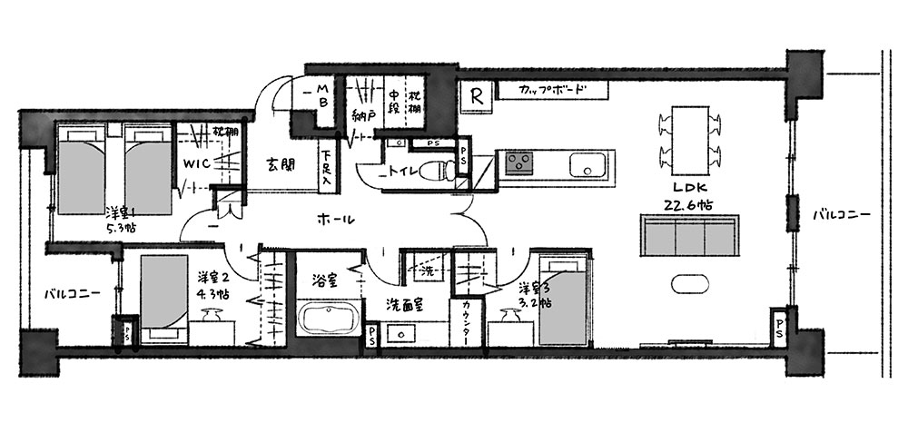 福岡を代表するリノベ会社「はぴりの!」と、全国の富裕層から高い支持を得ている「ハイエンド」が協力し、百道浜に建つ築34年のマンションをリノベーション。