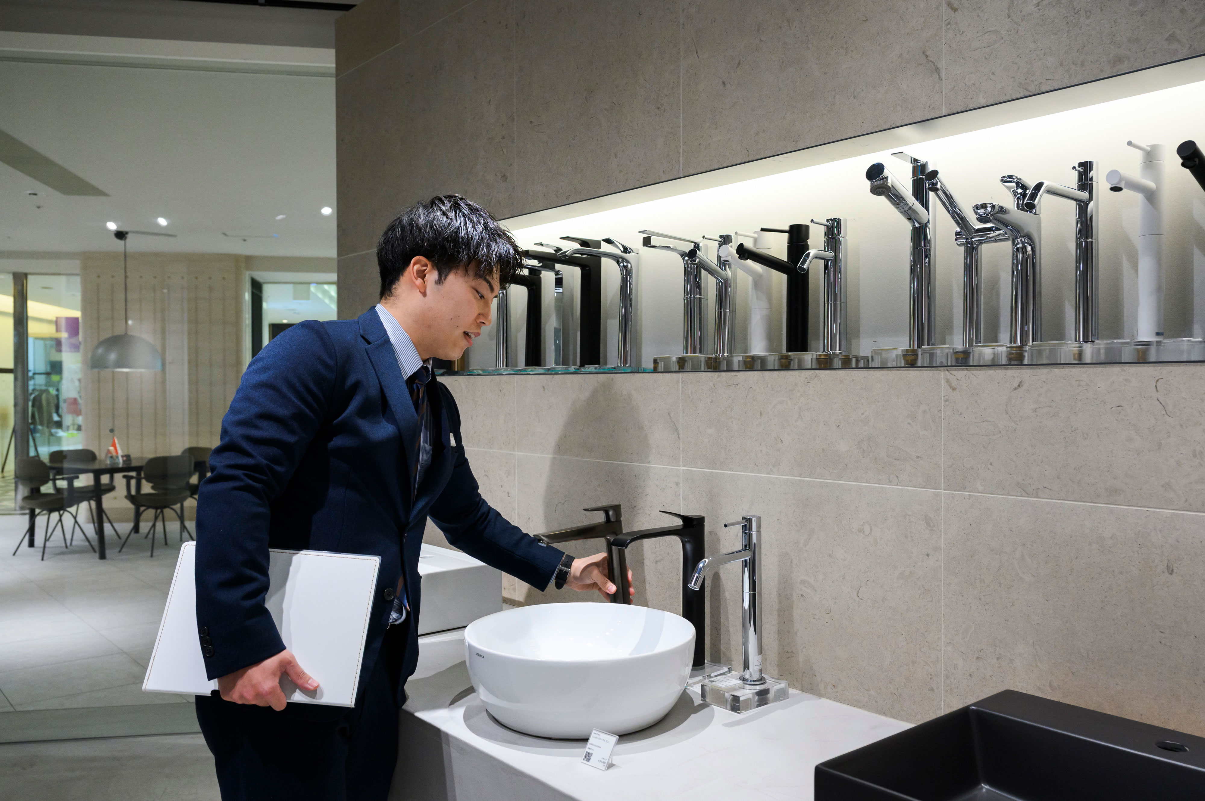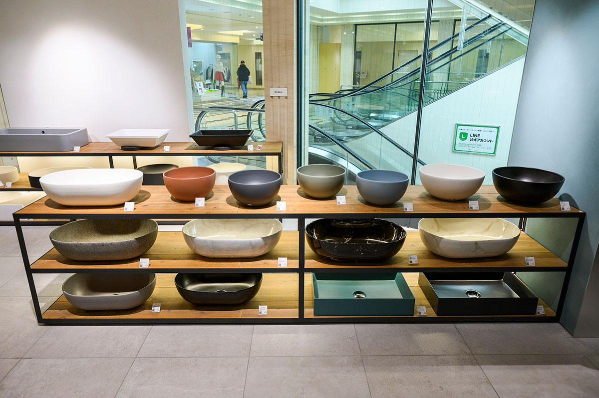 ボウルと水栓の組み合わせを、実際に試すことができます。