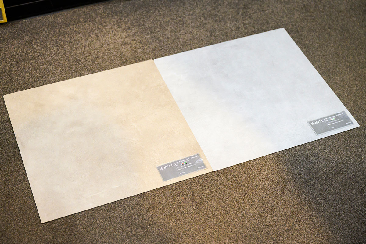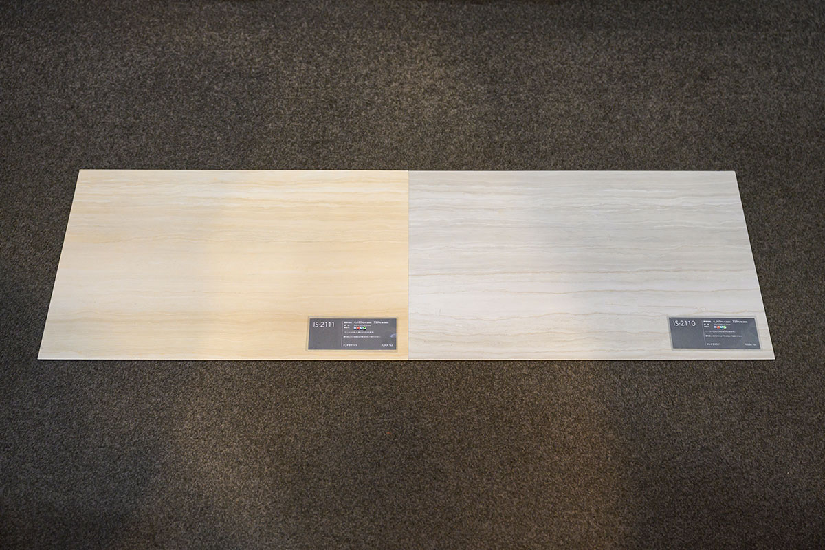 写真は、ベーシックなモルタル柄の「IS-2074(左)」と「IS-2071(右)」。