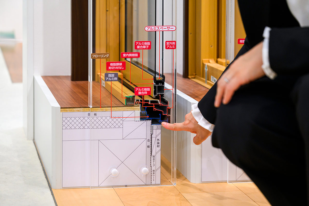アルミ樹脂のフレームとLow-E複層ガラスが、優れた断熱効果を発揮します。