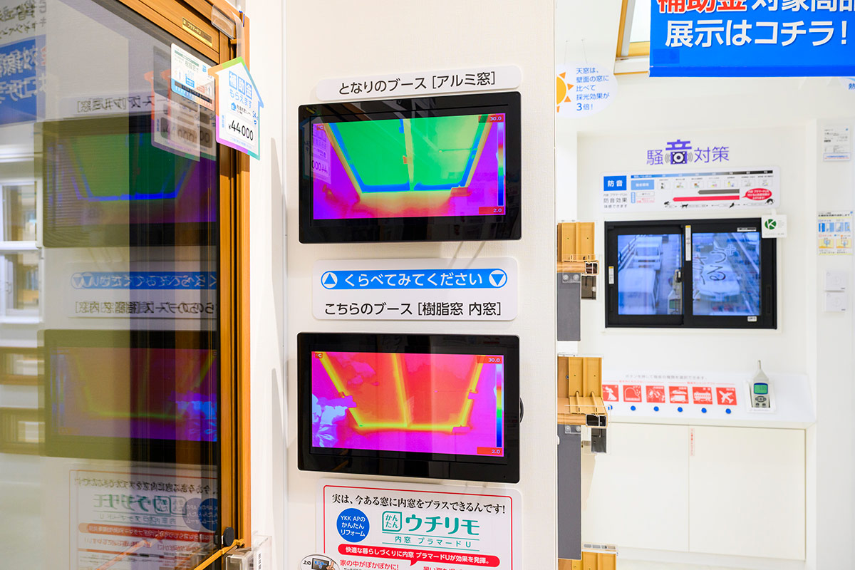 サーモグラフィを見ると、窓の温度差は一目瞭然です。