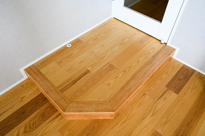 本宅ではリビングにステップを造作。暮らしの安全性と実用性を高めている。