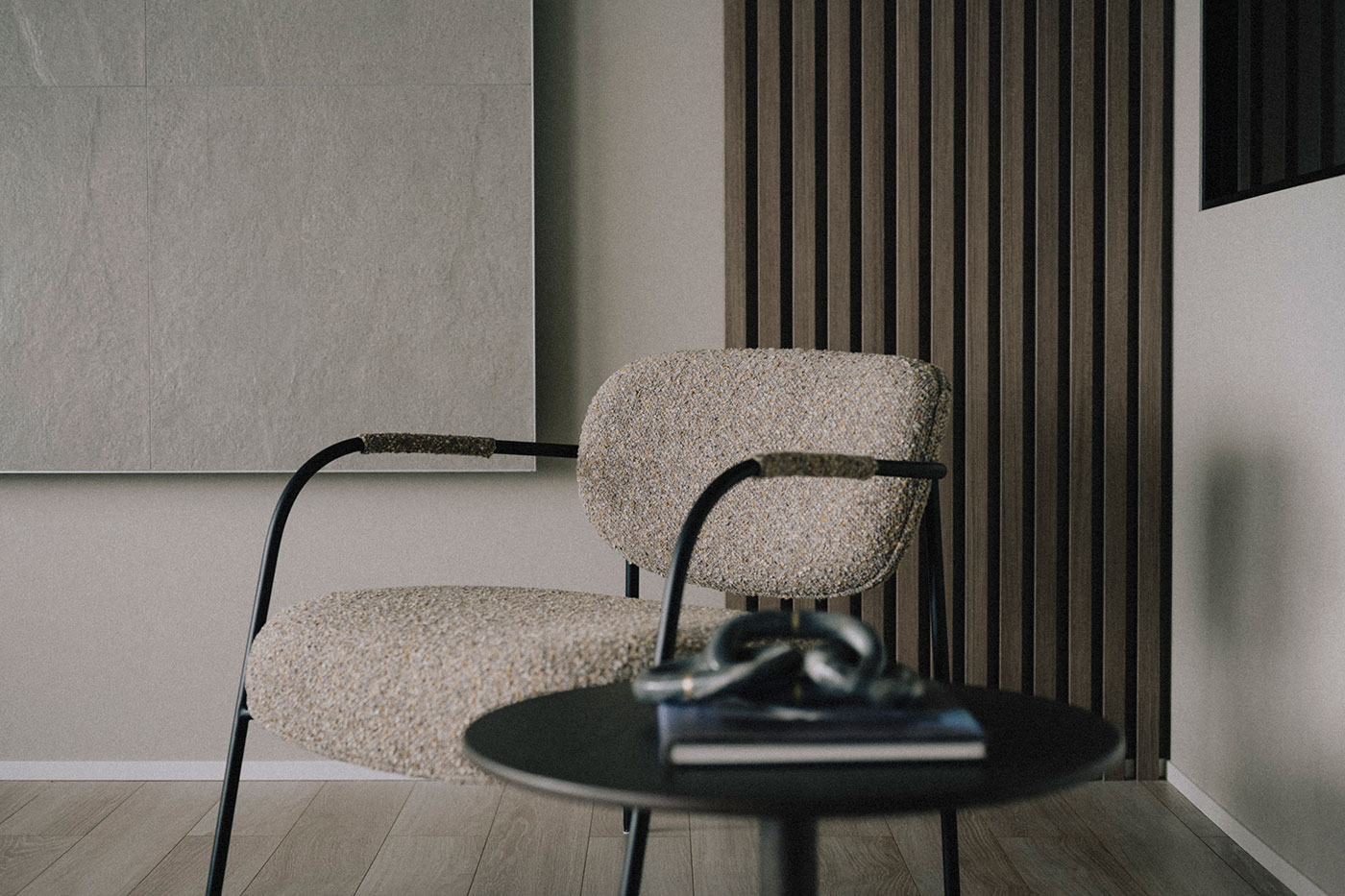 異素材を使いながらも、トーンを合わせることで調和を感じる空間となった。