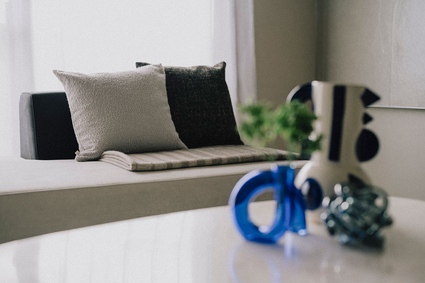 ハイグレードな空間を意識し、家具もデザイン性の高いアイテムを採用している。