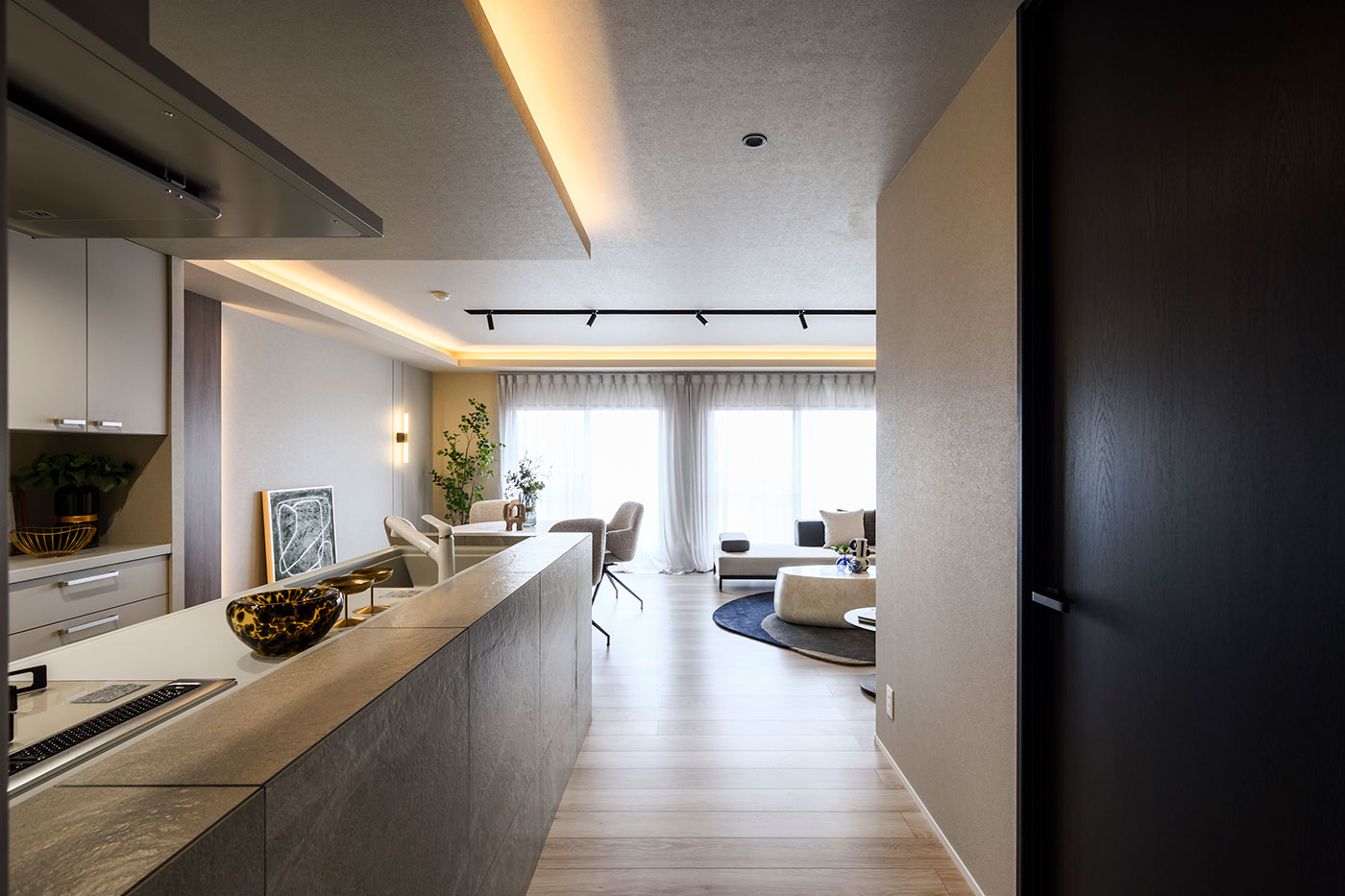 ラグジュアリーな空間を意識してブレイクスタイルを採用。インテリア性を高めた。