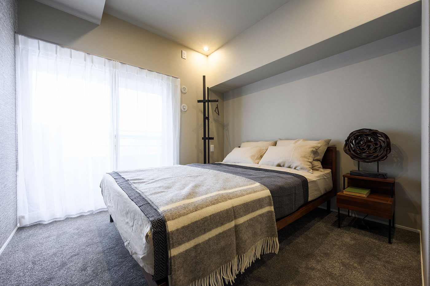 大人向けの主寝室らしく、落ち着いた色のクロスとカーペットを採用。
