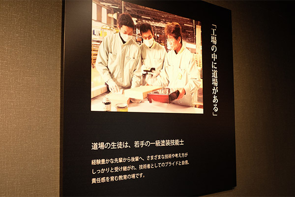 なんと工場内に、塗装技術者の腕を磨くための、秘密の道場があったのです。その名も「匠道場」。
