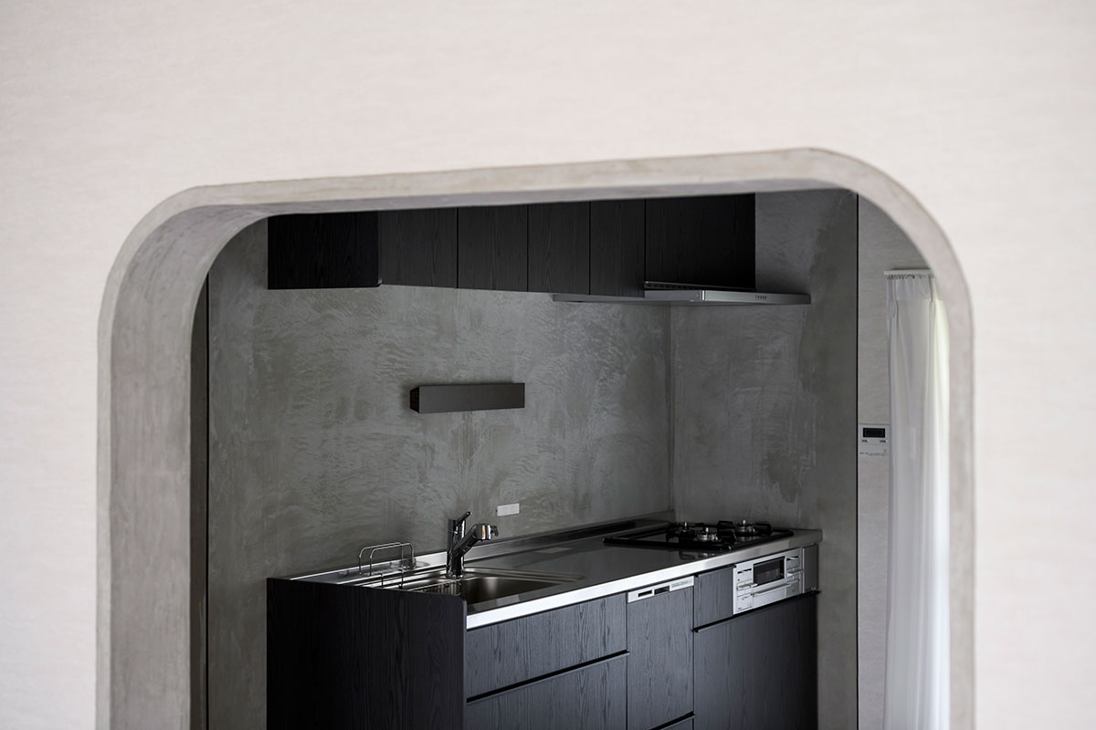 壁面にはキッチンパネルの代わりにモルタルを塗布しています。