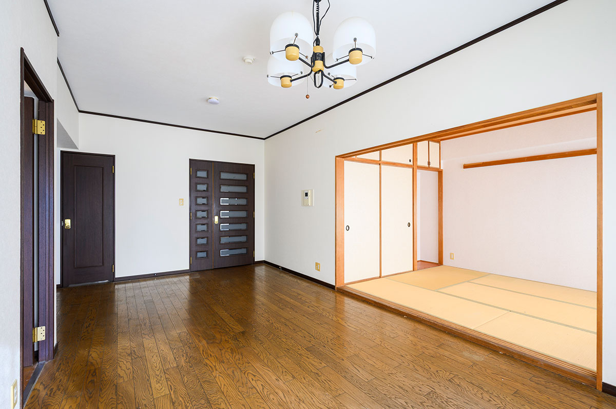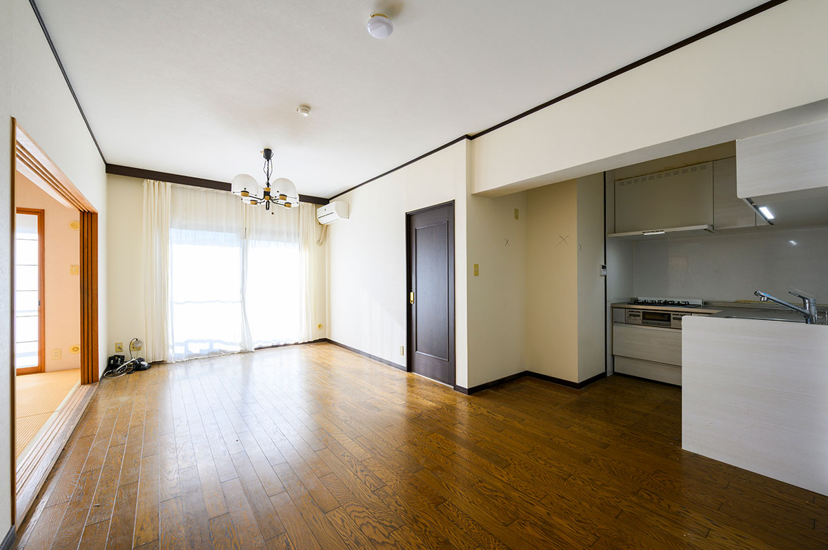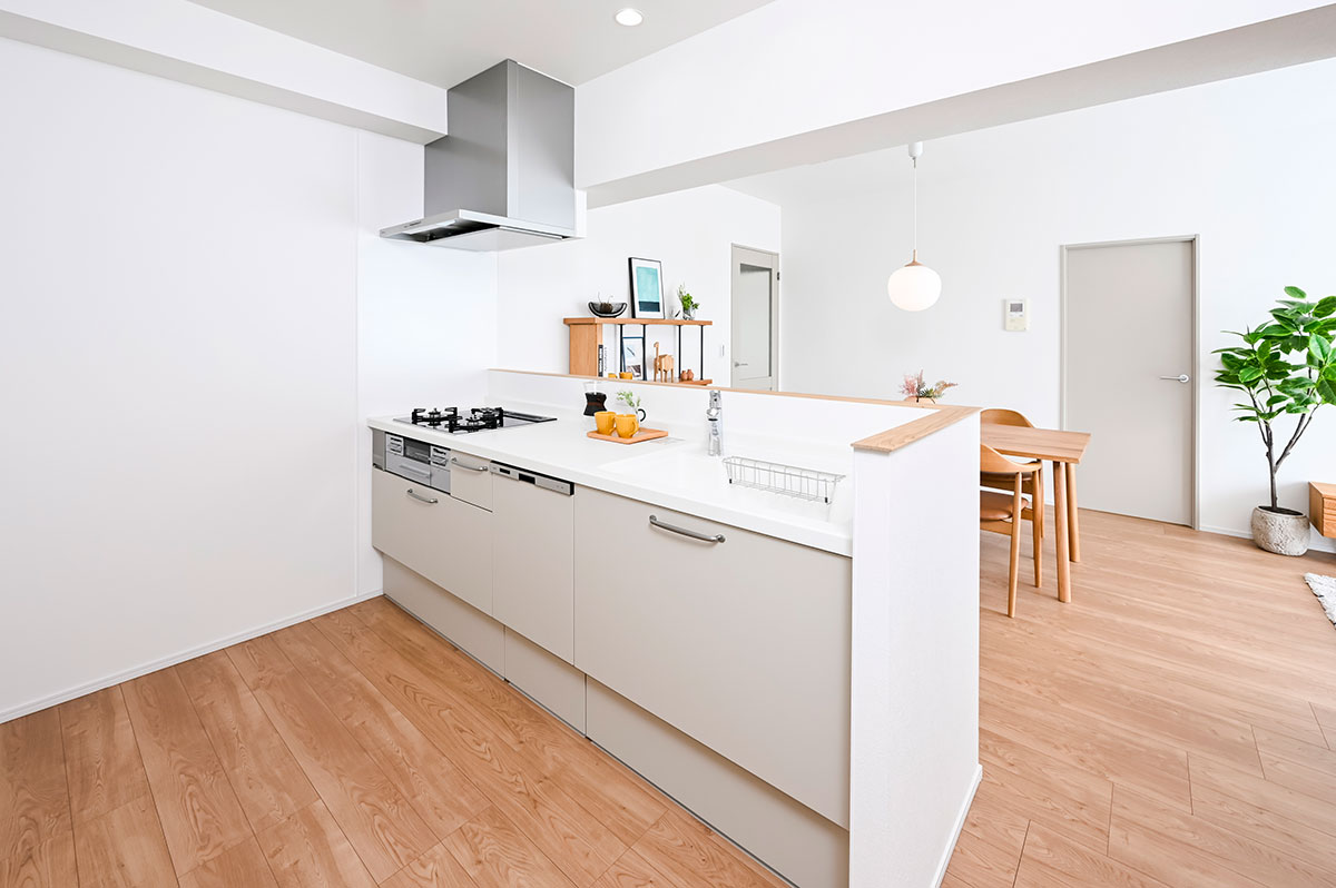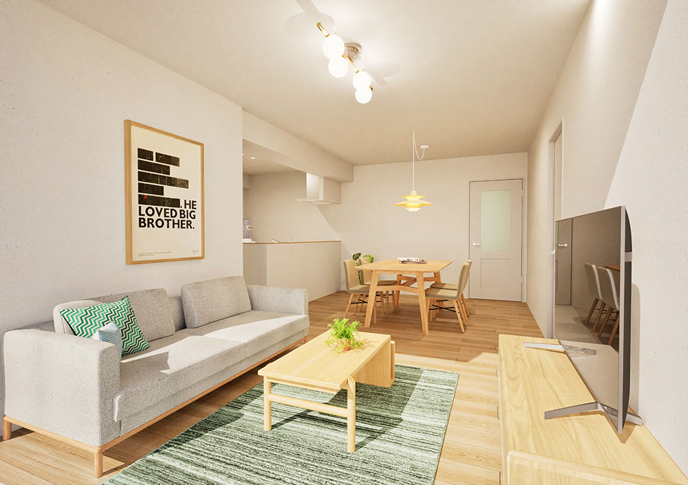 なだらかな丘陵地にあり、気持ちのいい光が入るLDKは、家族の笑顔が見られる対面キッチンに変更。たくさんの荷物が収納できるウォークスルークローゼットを、2つの居室間にレイアウト。このおかげで、風通しの良い空間が実現しています。