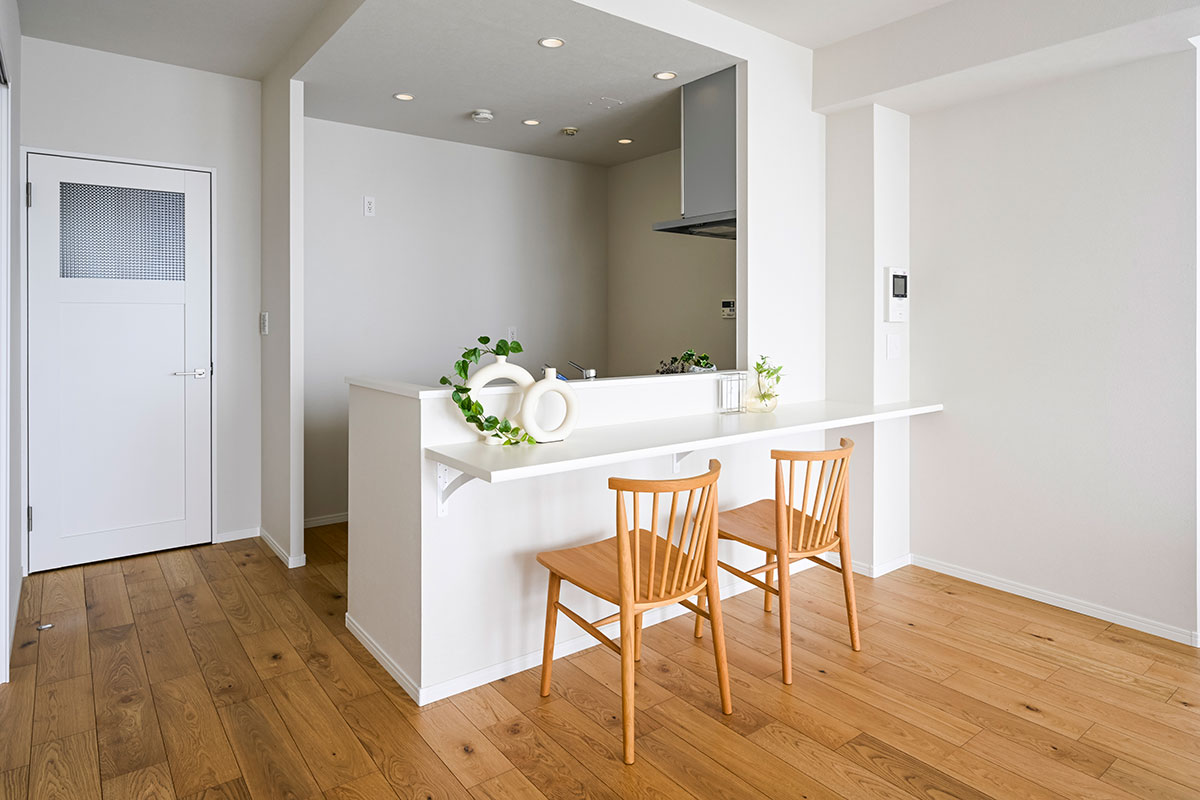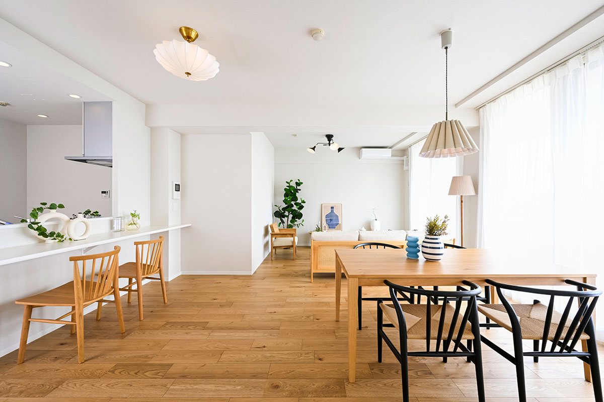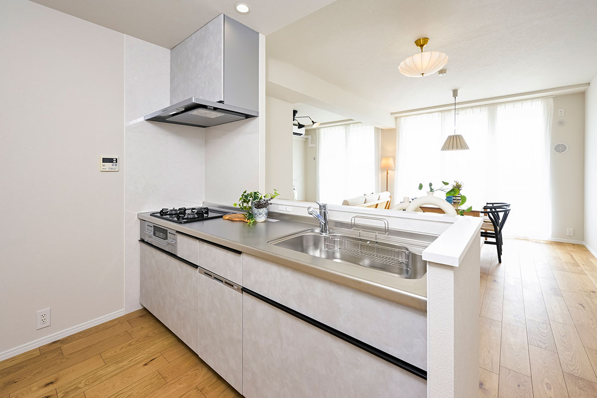 明るい宅内には、LIXILの人気設備を中心に設置。デザイン性はもちろん、使いやすさ、そしてお掃除性能の高い住宅設備を設置しているので、日々の生活ストレスも軽減します。気になるフローリングは、どんな家具とも相性の良いオークを選定。しかも、ハイグレードな突き板を採用しているため、裸足で歩いても気持ちの良いリビングを実現しました。