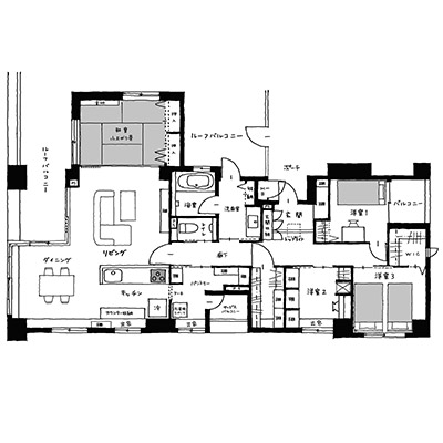 そんな空間を、贅沢にも親子3人のご家族が過ごす場へと再レイアウト。ルーフバルコニーに面した和室とLDKを一体化したことで、リビングは光が燦々と入る気持ちの良い空間に生まれ変わりました。
