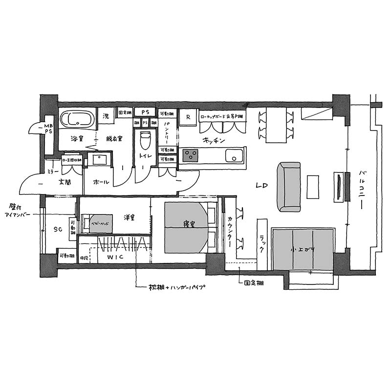 マイホーム探し中は妊娠中だった奥さまですが、完成した新居では生まれたばかりの赤ちゃんとの3人暮らしがスタートしました。これからの10年、20年を意識して、シンプルだけど無駄のないレイアウトを実現しています。