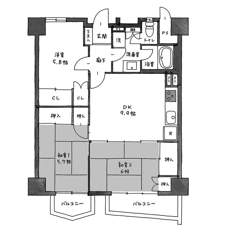 今回の間取りは2LDK+Sと表記していますが、玄関横の「洋室」は本当に部屋と言っていいのか。もしかすると、玄関土間と言った方が適切ではないのか。リビングに隣接した洋室は、建築基準法に基づくと倉庫になるのではないのか。きっと、大手不動産会社の担当者であれば、頭を抱えるはず。