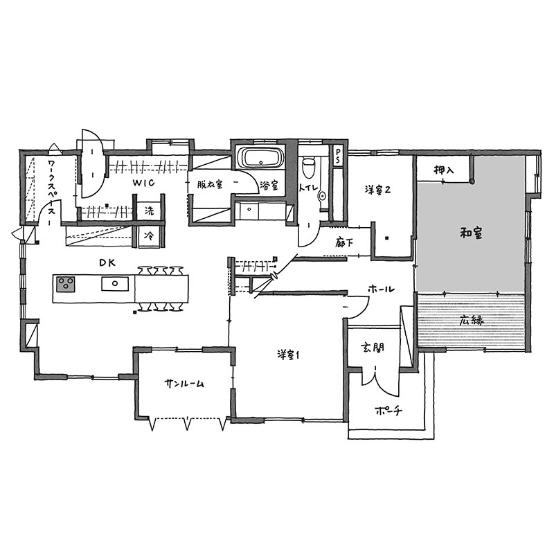 もちろん性能向上だけでなく、宅内の暮らしやすさもアップしています。子育て中のご家族でしたので、それぞれがストレスなく過ごしやすい回遊動線を新設しただけでなく、廊下と洗面スペースを一体でプランニングするなど、断熱工事で高まった宅内の快適性を間取りにも活かしました。