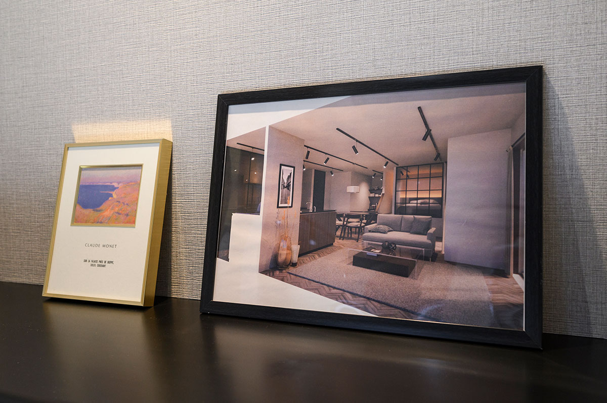 ご夫婦がイメージしたのは、出張や旅行先で訪れるホテルのような寛ぎの空間。打ち合わせ時に当社プランナーが提案したパースがご夫婦のイメージにピッタリ合ったそうで、その通りの空間が実現しました。