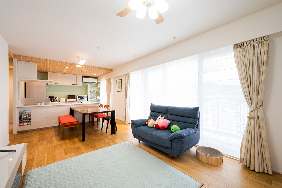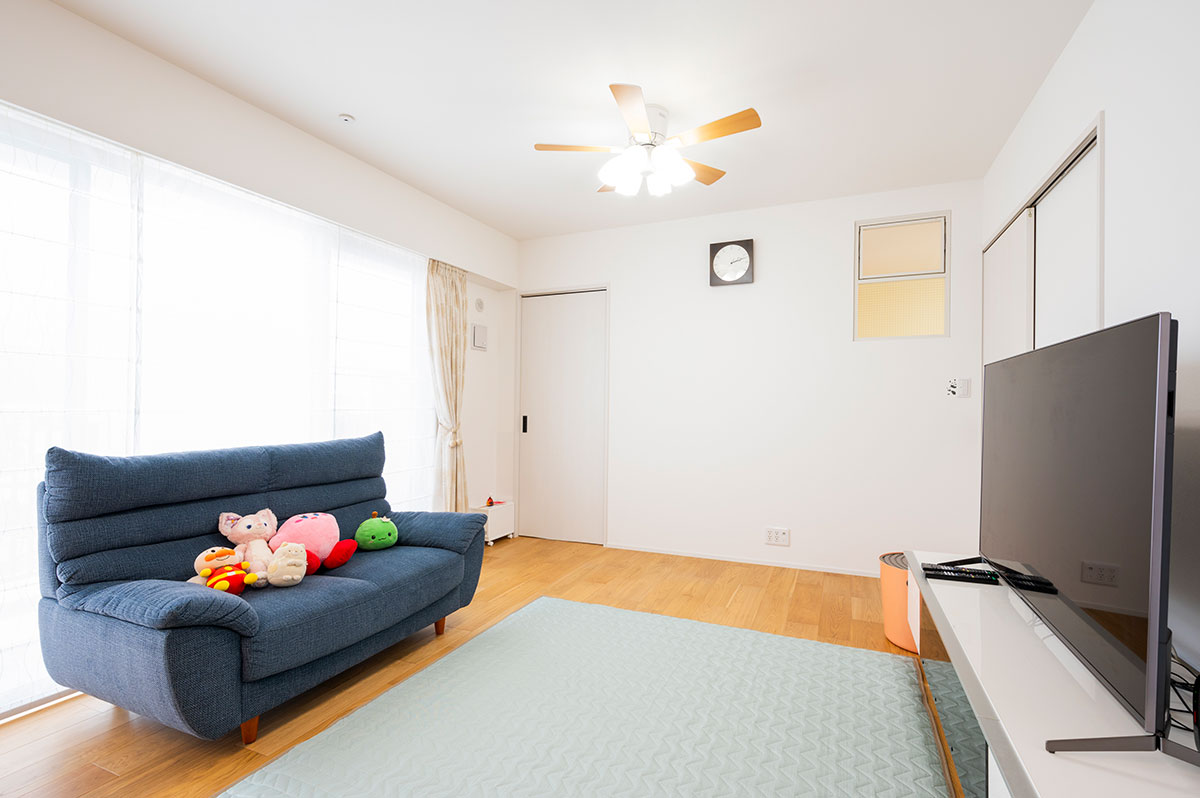 ご夫婦と3姉妹、5人家族のお宅です。およそ15年前に購入されたマンションでしたが、子どもが成長し、ご主人の在宅ワークで個室が足りなくなったため、3LDKから4LDKへと間取り変更をされました。