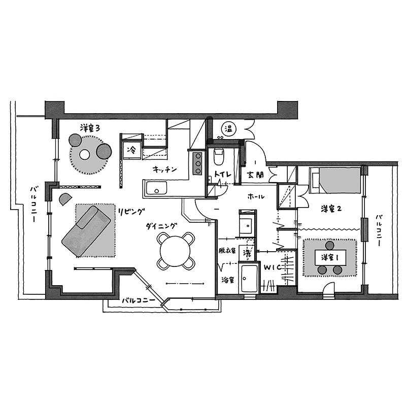 だからこそ、ライフスタイルに応じて、1LDKから3LDKまで間取りを変えることができる部屋を設計しました。76㎡とコンパクトながら、家族4人でも長く、快適に生活ができる家です。