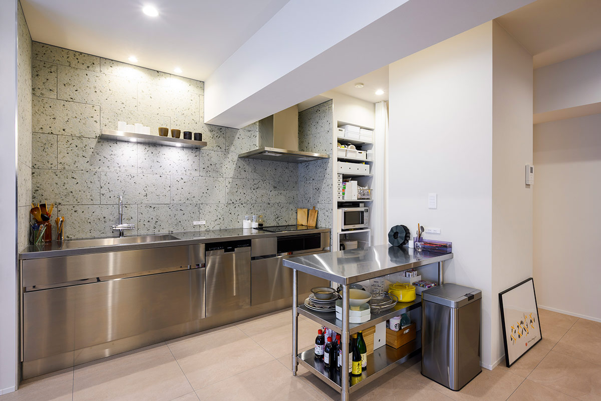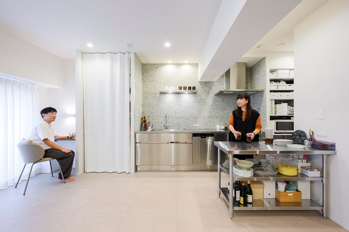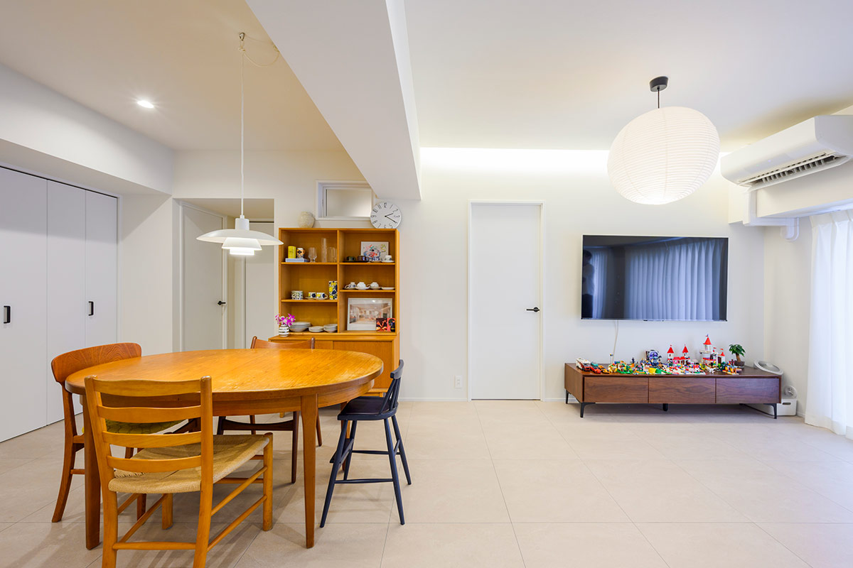 90平米オーバーの、マンションとしては元々広いお宅でした。それでも、リビングが広く感じられるのはキッチンが壁付けタイプだから。料理に集中したいという理由で、対面ではなくあえて壁付けを選択されました。