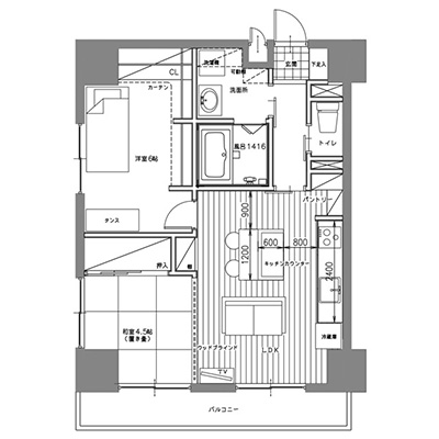 男性のお客さまには小さく感じられるお風呂を1416にサイズアップし、キッチン対面にはIKEA製品をベースにした造り付けの収納兼カウンターテーブルや本棚を造作しました。また、寝室には壁面を利用した大容量のクローゼットを新設しています。